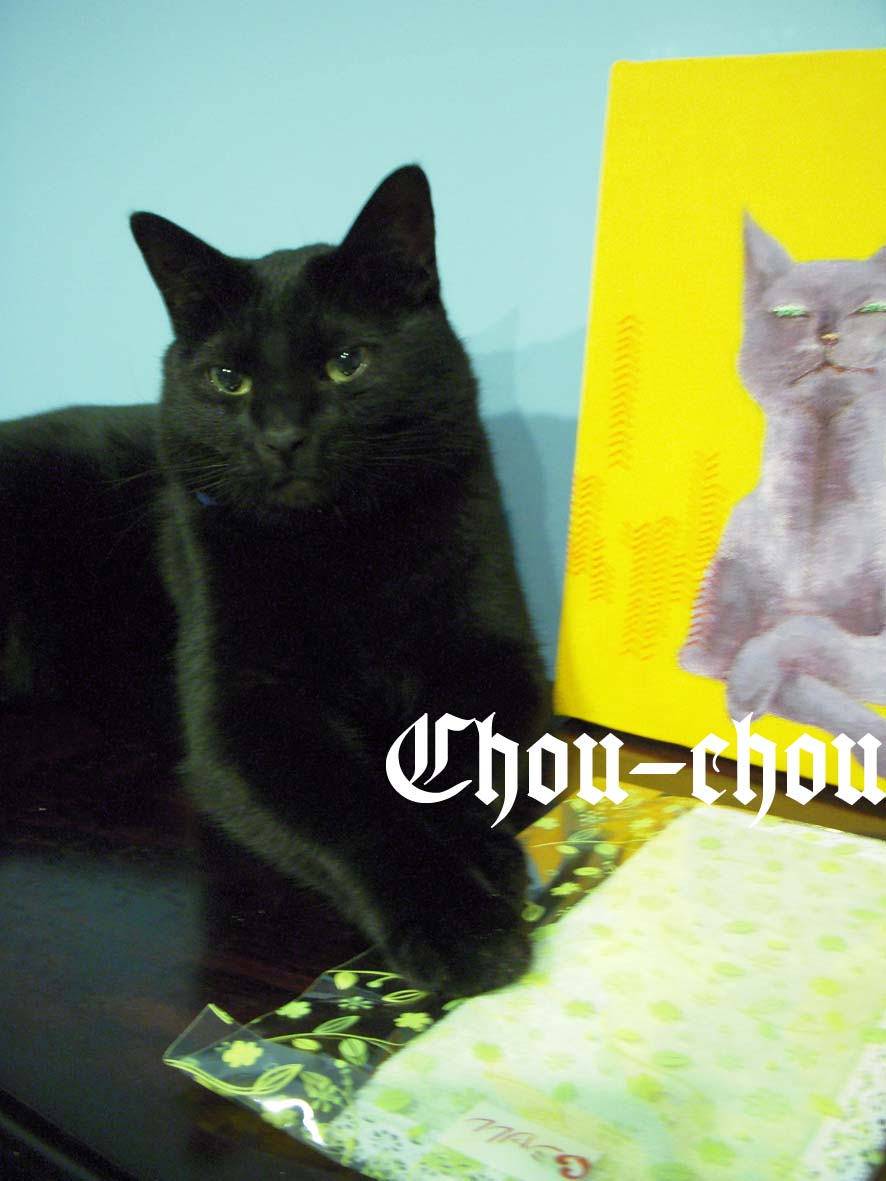 ちなみに、後ろに見えている怖い素敵な肖像画は、以前シュシュがサスケをモデルにして描きました。ちょっとイッちゃった感じのイラストが大好きです。