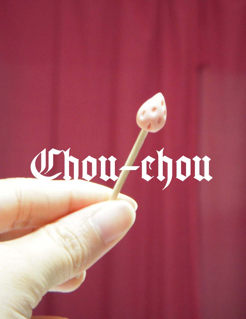 マカロンの横、手で粘土をちぎったあたりを爪楊枝でちょんちょんとつつき、好みのピエができたらできあがり。