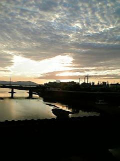 電車の中から、河口。瀬戸内海の朝は穏やかで好きです。