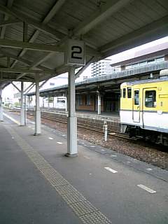 新山口駅です。斜めになっちゃった。電車の中から反対側のホームを見たら、レトロな雰囲気が素敵な駅だと気が付いて。改札口や階段は改装してあるので雰囲気が全然違うんですよ。