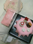 これお砂糖でできてるんですよー!!ケーキの上に乗ってるサンタさんとか、あれです、あれ。
