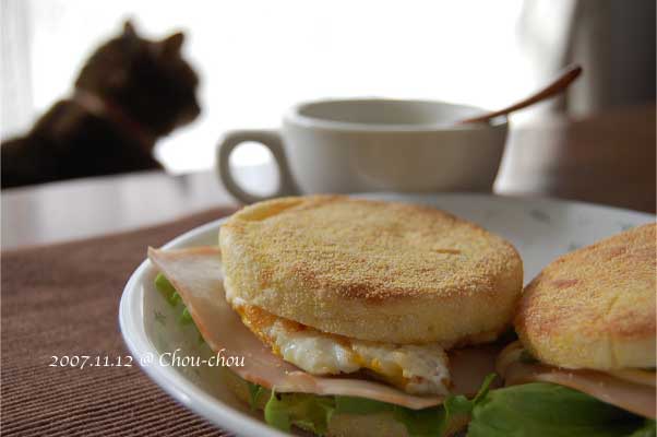 さて、今日の朝食はマフィンを作りました。もう朝食と呼んではいけない時間帯だったかもね。