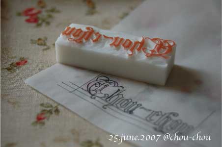 シュシュの名刺用にスタンプを彫りました。作ったからには使わないとー。