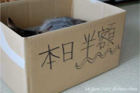 カメラを取り寄せた時の段ボール箱がお気に召したご様子なので、横に落書きしてみました。