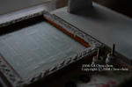 ジェッソとモデリングペーストで額縁っぽい飾り(レリーフって言うんかいな?)を作って、全体を白く塗装しました。